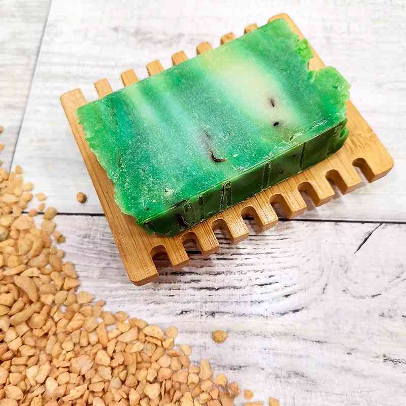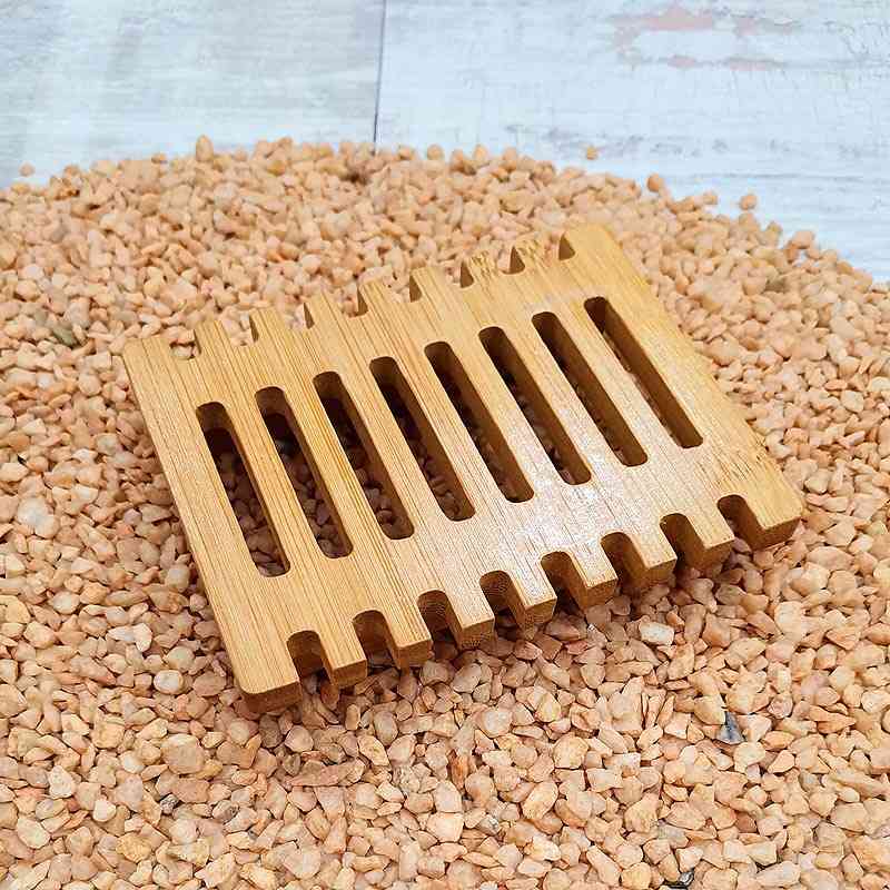 Jabonera de madera natural hecha a mano con madera sostenible de Hemu. Estas jaboneras rectangulares y con una rejilla de drenaje, permiten que el jabón permanezca seco y tenga una duración mas larga. Es un accesorio ideal para nuestros jabones artesanos.