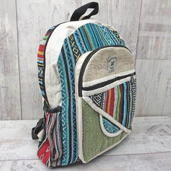 Mochila de cáñamo y algodón hecha en Nepal de forma artesanal, utilizando tejidos naturales.